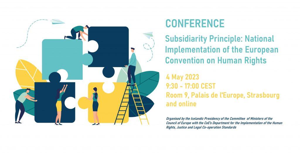 CCBE nam je posredoval vabilo za sodelovanje na spletni konferenci ”Načelo subsidiarnosti: nacionalno izvajanje Evropske konvencije o človekovih pravicah”, ki jo soorganizira islandsko predsedstvo Odbora ministrov Sveta Evrope, evropsko sodišče za človekove pravice in Oddelek za izvajanje standardov človekovih pravic, pravosodja in pravega sodelovanja Sveta Evrope (DGI – Human Rights and Rule of Law).